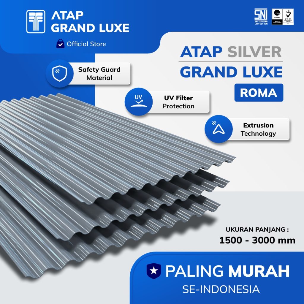 Grand Roof yang terbuat dari daur ulang botol pet yang tetap awet walau terkena sinar matahari dalam jangka waktu lama. bukan hanya itu, Grand Roof turut serta berkontribusi dalam mengurangi limbah botol plastik untuk lingkungan. Atap Grand didesain dengan material yang tidak berisik jika terkena benda jatuh. membuat penghuni bangunan jauh lebih jaman dan aman.