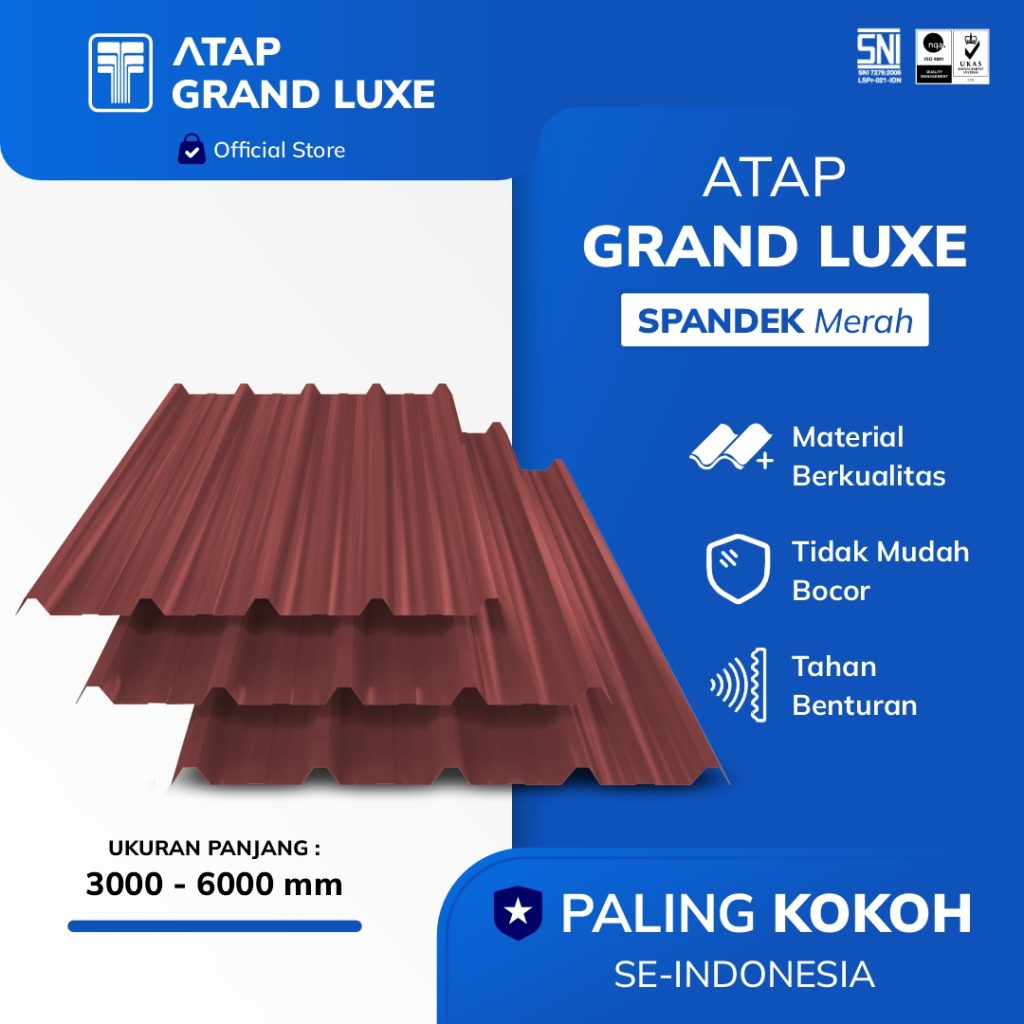 Grand Roof yang terbuat dari daur ulang botol pet yang tetap awet walau terkena sinar matahari dalam jangka waktu lama. bukan hanya itu, Grand Roof turut serta berkontribusi dalam mengurangi limbah botol plastik untuk lingkungan. Atap Grand didesain dengan material yang tidak berisik jika terkena benda jatuh. membuat penghuni bangunan jauh lebih jaman dan aman.