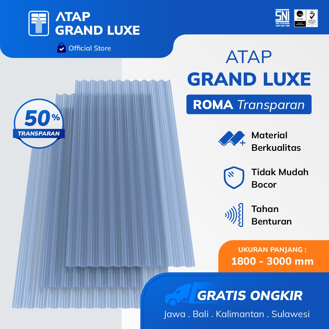 Kombinasi material terbaik atap Grand Luxe di dukung dengan teknologi mesin-mesin termutakhir dalam proses pembuatannya adalah salah satu keunggulan produk Atap Grand Luxe. Atap Grand Luxe memberikan solusi atap multifungsi mulai dari sistem yang di rancang khusus untuk memenuhi kebutuhan pasar hingga mengurangi masalah-masalah yang sering terjadi pada saat instalasi secara signifikan.